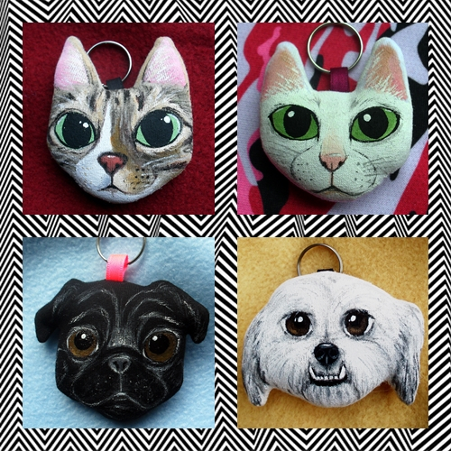 Tu mascota en llavero para que te acompañe a todos lados. No son retratos realistas, son una adaptación a mi estilo, respetando las características que identifican al animalito. Se pueden realizar en diferentes soportes.