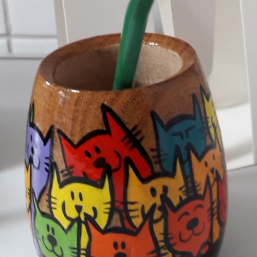 Mate de madera pintado a mano
