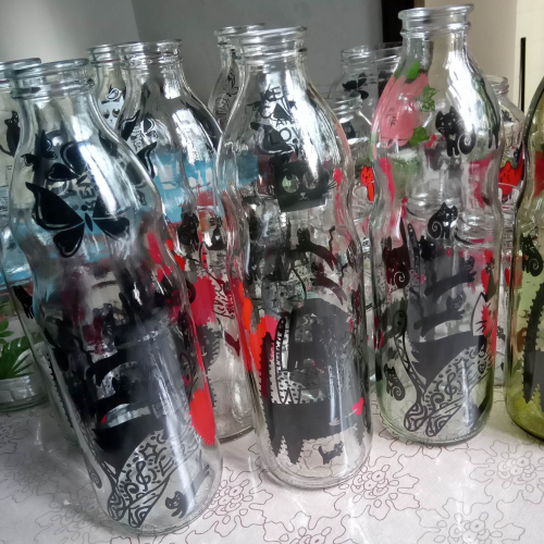 BOTELLAS DE VIDRIO CON IMÁGENES PERMANENTES ADEMÁS FRASCOS DE VIDRIO VARIOS TAMAÑOS