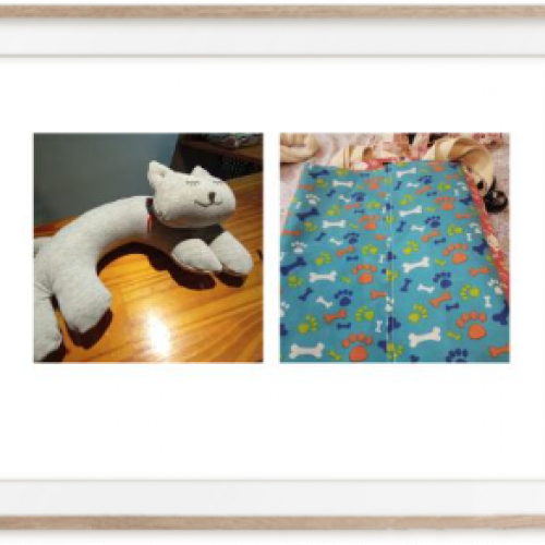 Cuello de viaje Gatuno y Bolsas forradas, distintos diseños, con bolsillo y manija larga