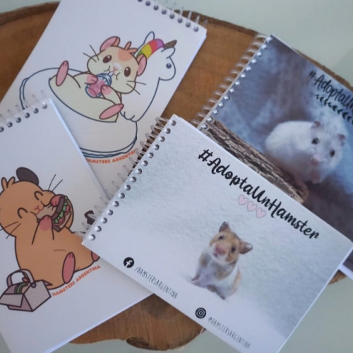 Si sos de lxs que llevan su anotador a todos lados, estas libretas son la opción ideal por su tamaño de bolsillo. Tenes muchos diseños para elegir, tanto de rescatados de Hamsters Argentina como ilustraciones propias.