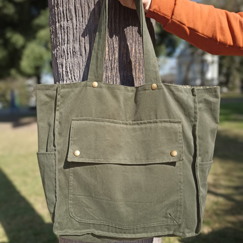 Hermoso Bolso super amplio, bolsillos en los laterales, frente, en su interior se encuentra forrado, tiene un bolsillo con cierre