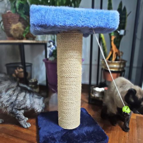 Rascador de más de medio metro de alto NUEVO Para gatitos bebé/adultos/viejitos Cuenta con una base firme de madera forrada en tela polar, el tronco cubierto de soga gruesa, para disminuir su desgaste y una hermosa camita dónde podrá reposar después de cada juego!