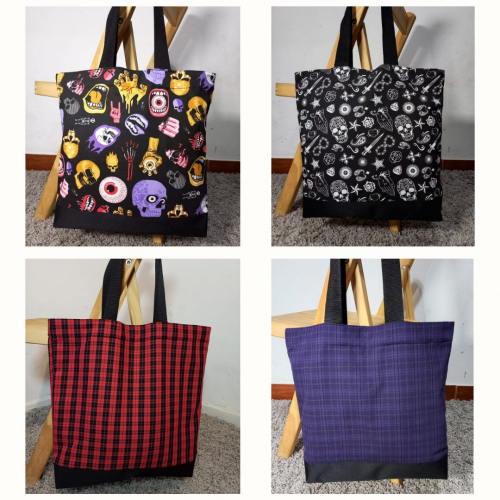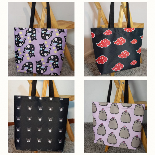 Los bolsos estan hechos con cordura sublimada diseñada por mua jeje De 40x40cm forrados con bolsillo interno y broche iman