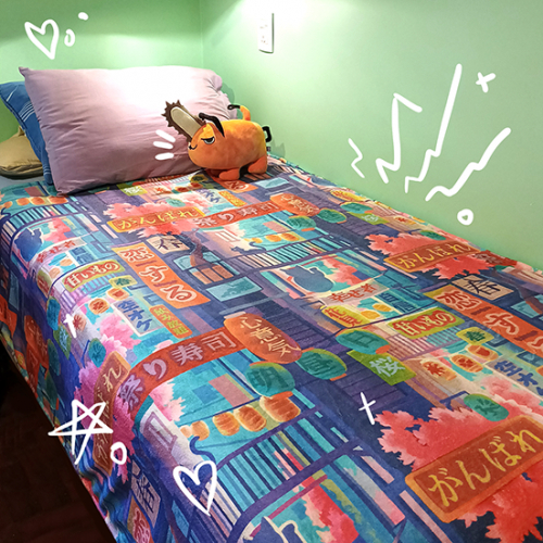 Una manta de 1,40m x 1,80m, de tela súper suave y no pesada, 100% poliéster, ideal para tirarse en el sillón o la cama a leer un buen manga. El diseño está hecho con mucho amor