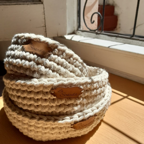 Cestos tejidos al crochet en hilo de algodón. Son muy versátiles ya que tienen mil usos! Eco friendly.