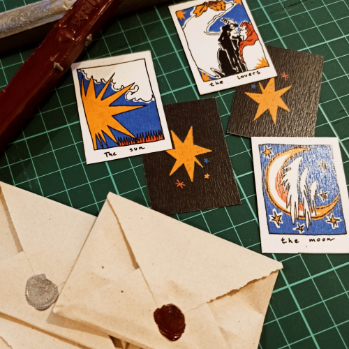 Cada sobre lacrado contiene una carta del tarot al azar.