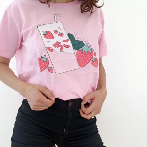 Remera Strawberry Milk, 100% puro algodón. Disponible del S al 2XL.